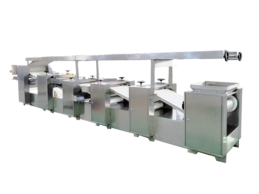 3、設備為變頻控制,每一道壓輥都采用單機驅動(dòng),通過(guò)測距傳感器,實(shí)現自動(dòng)面帶張緊控制,多輥聯(lián)動(dòng)??焖佥p松地制作大量面皮,提高生產(chǎn)效率。